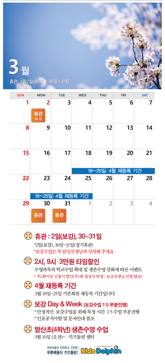 3월 수강일정 안내
